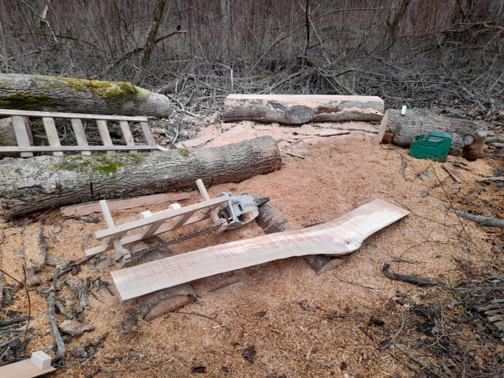 Débiter des Planches avec une Gruminette. La Gruminette reste une solution économique pour débiter des pladans des bois rares comme la ronce de Frêne, du mirabellier ou encore pommier.