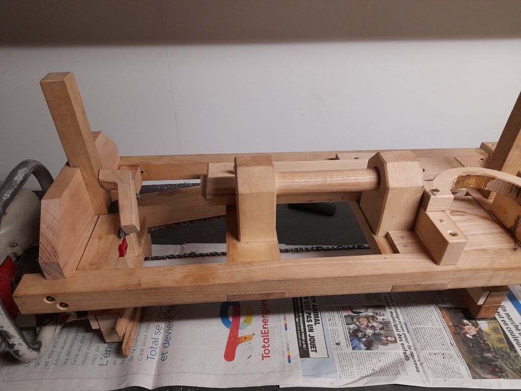 L’un des principaux avantages de cette méthode est l’autonomie qu’elle offre. En débitant vos propres planches, vous n’êtes plus dépendant des fournisseurs de bois et pouvez ainsi réaliser des économies considérables. De plus, le coût initial d’une gruminette est généralement inférieur à celui d’une scierie mobile. En plus on peut en fabriquer une. La nôtre est entièrement en bois. Ci-dessous une image après l’avoir terminée.