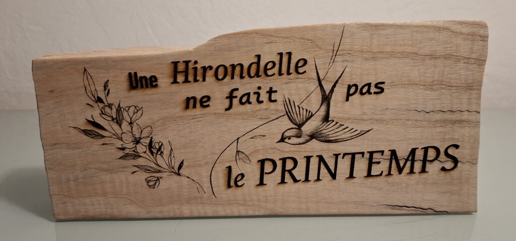 Gravures laser – nos créations. Nous avons récemment franchi une étape importante en investissant dans notre premier graveur laser. Un outil qui ouvre la porte à une multitude de possibilités créatives. Après une phase de découverte et de mise au point, nous sommes désormais prêts à vous offrir des gravures laser personnalisées qui sauront vous inspirer au quotidien.