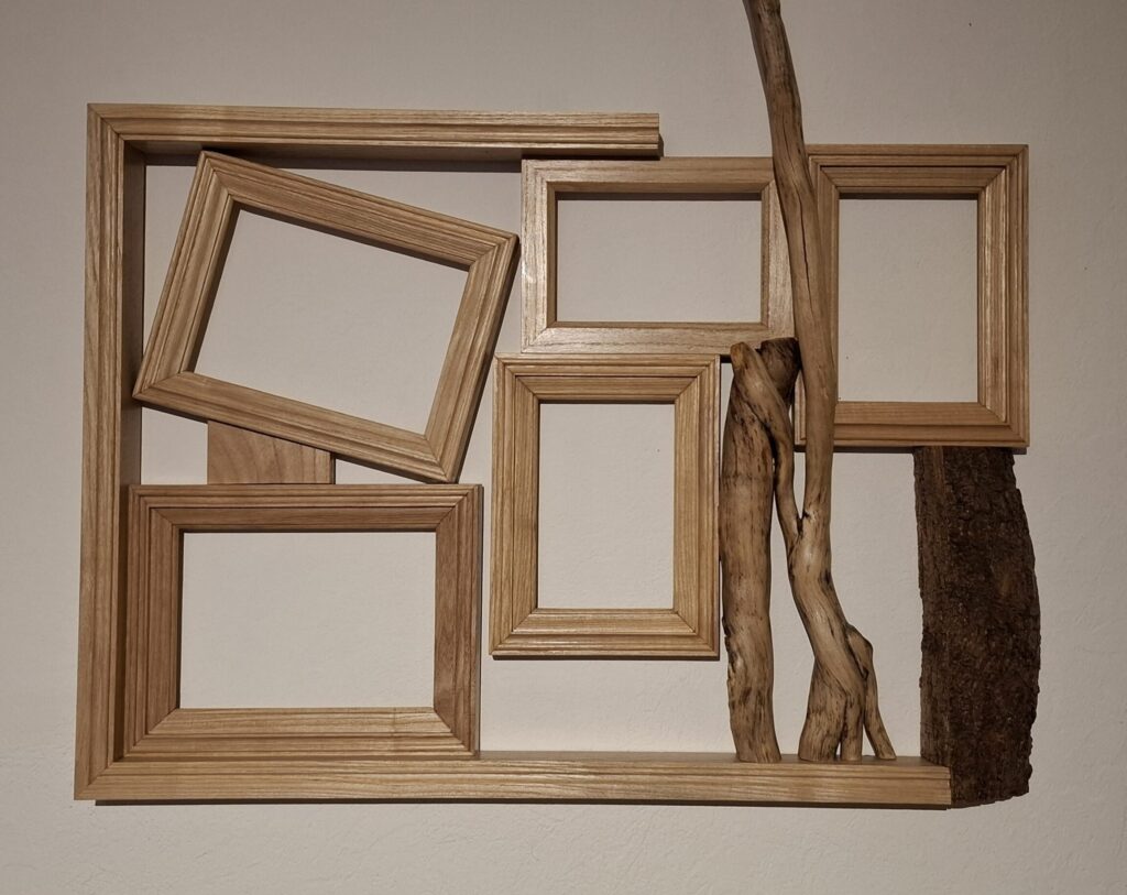 Prototype d’un Cadre multi vues unique en Frêne massif. Dans le monde de la décoration intérieure, l’authenticité et l’unicité sont