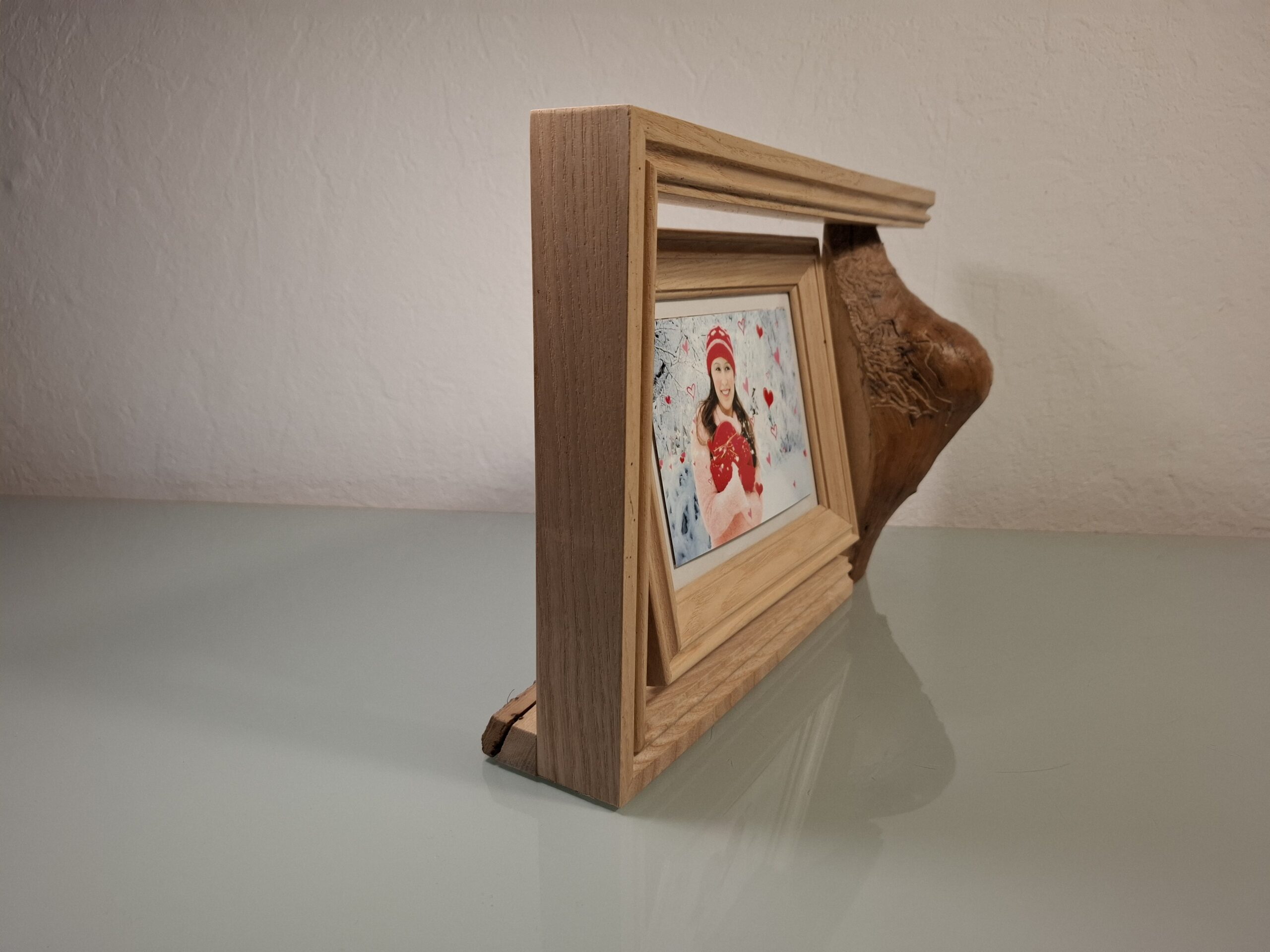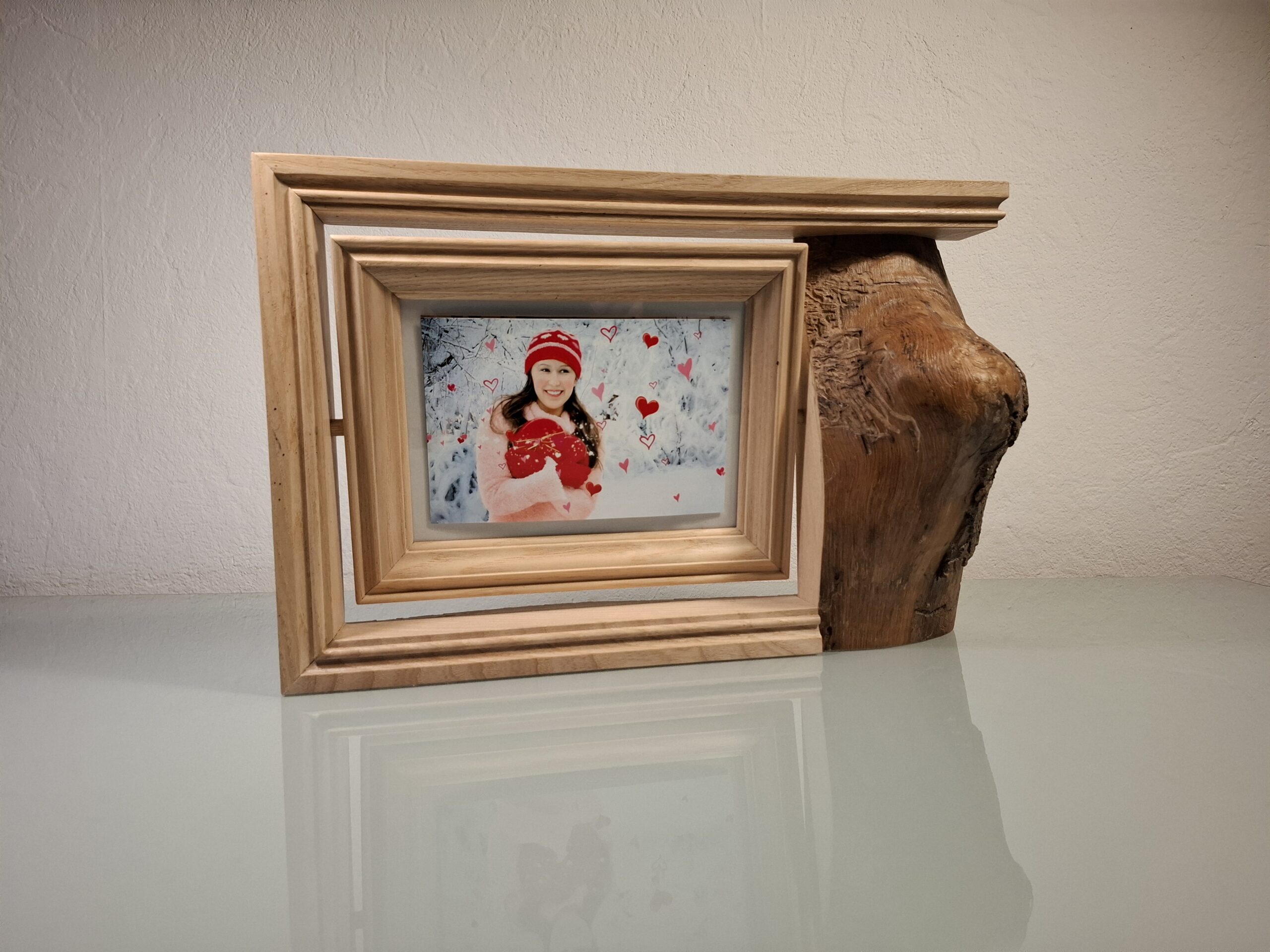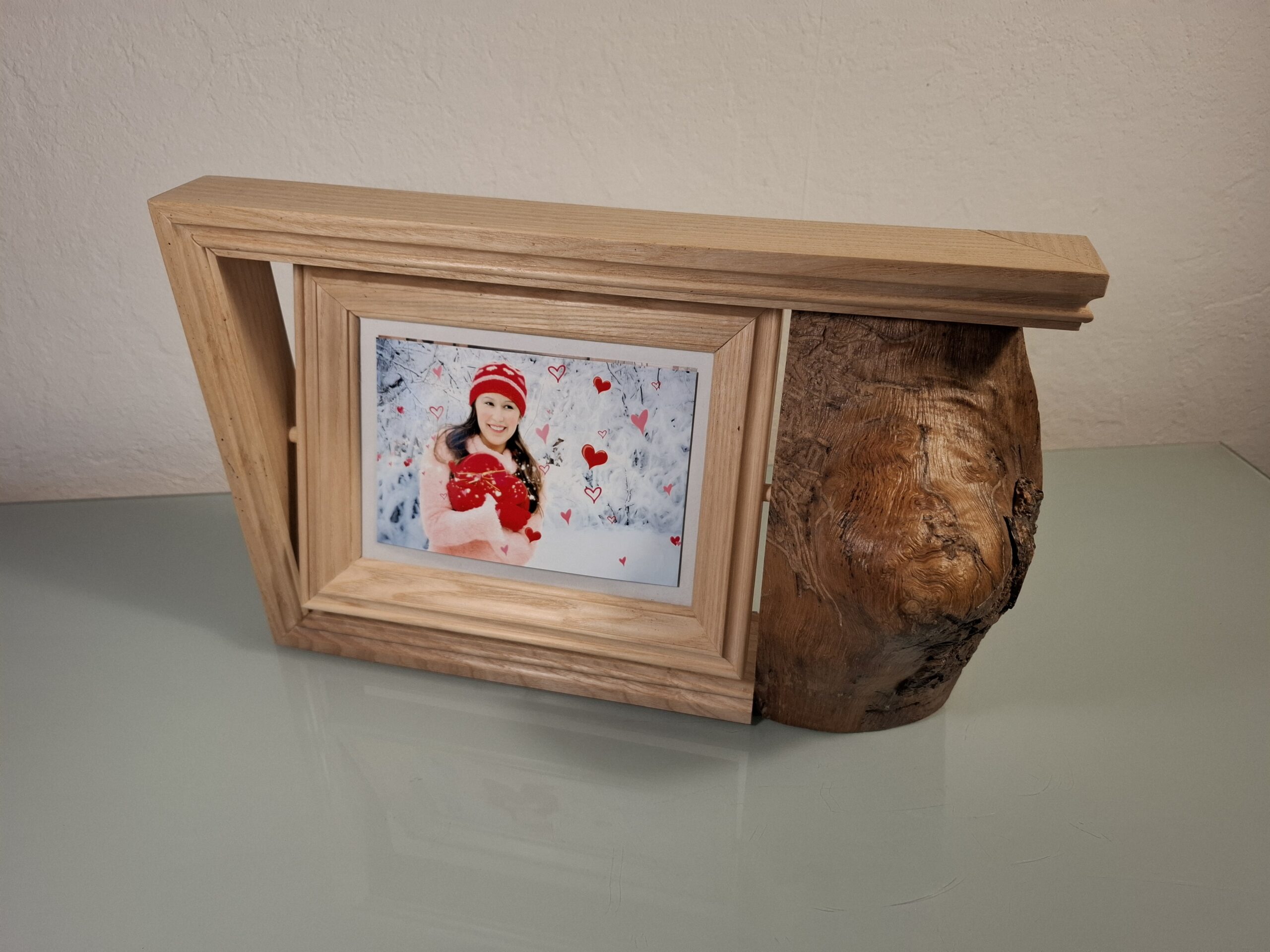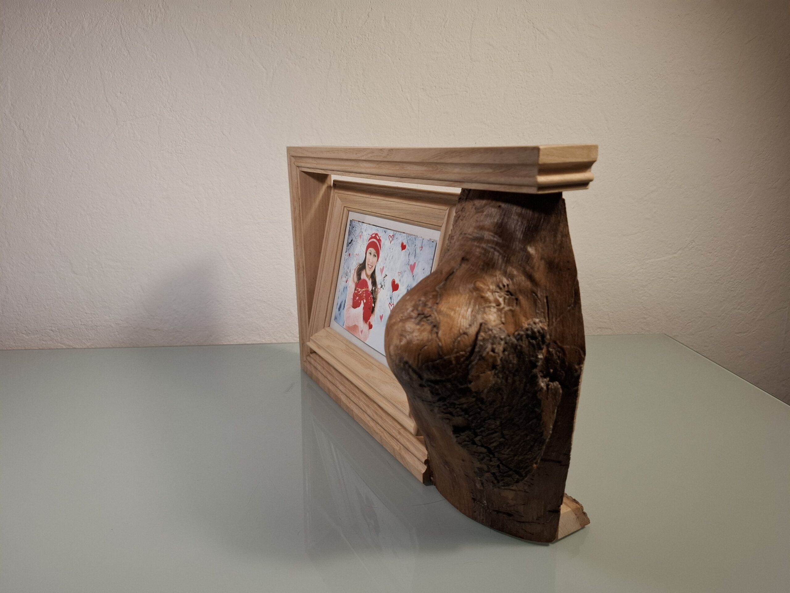Découvrez le charme intemporel de ce cadre photo à poser en bois. Une véritable œuvre d’art qui sublime vos souvenirs. Ce cadre se distingue par son design campagnard, mêlant tradition et élégance avec ses cadres moulurés d’une autre époque. À droite, un beau morceau de Frêne brut ajoute une touche authentique et rustique.