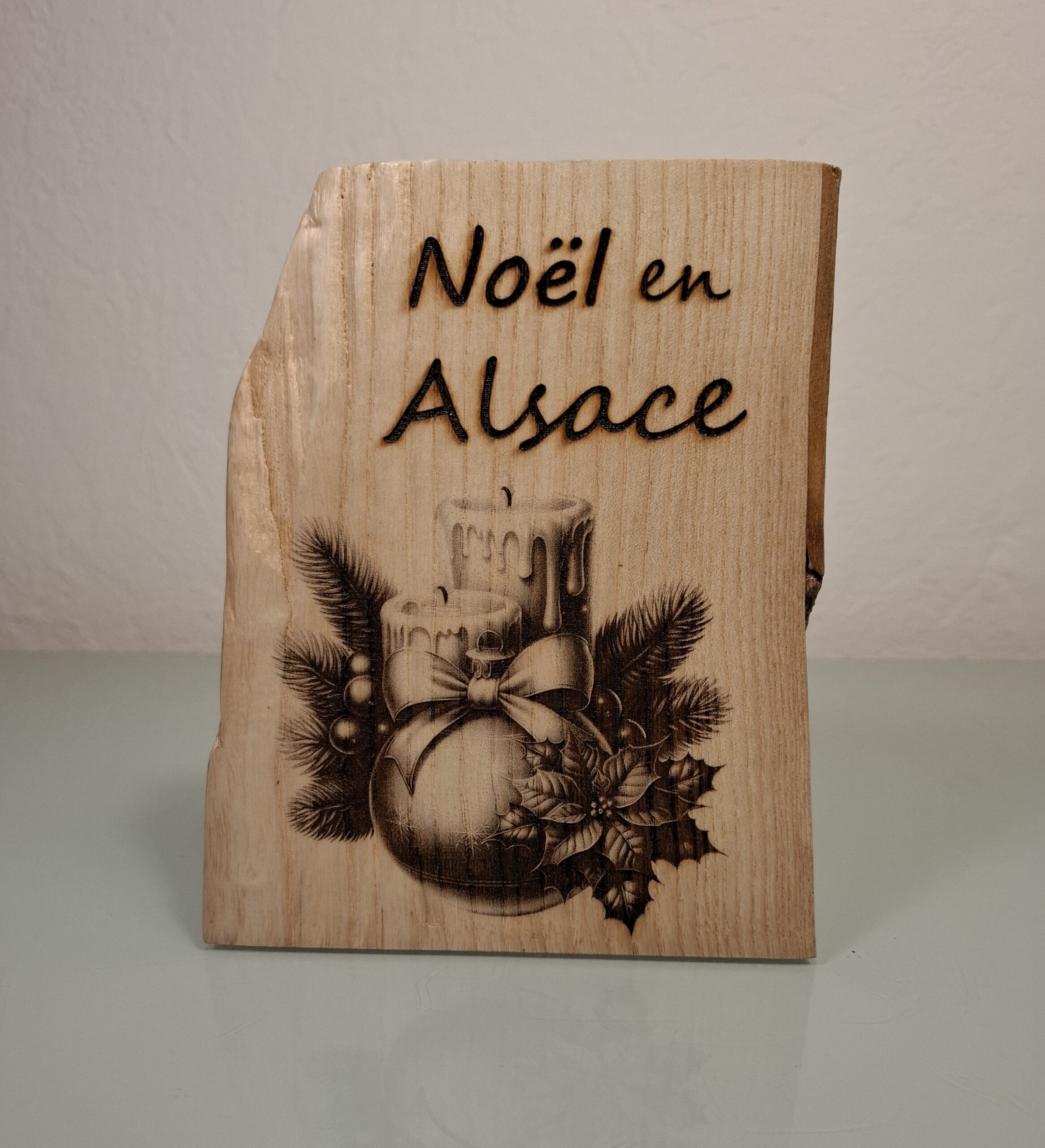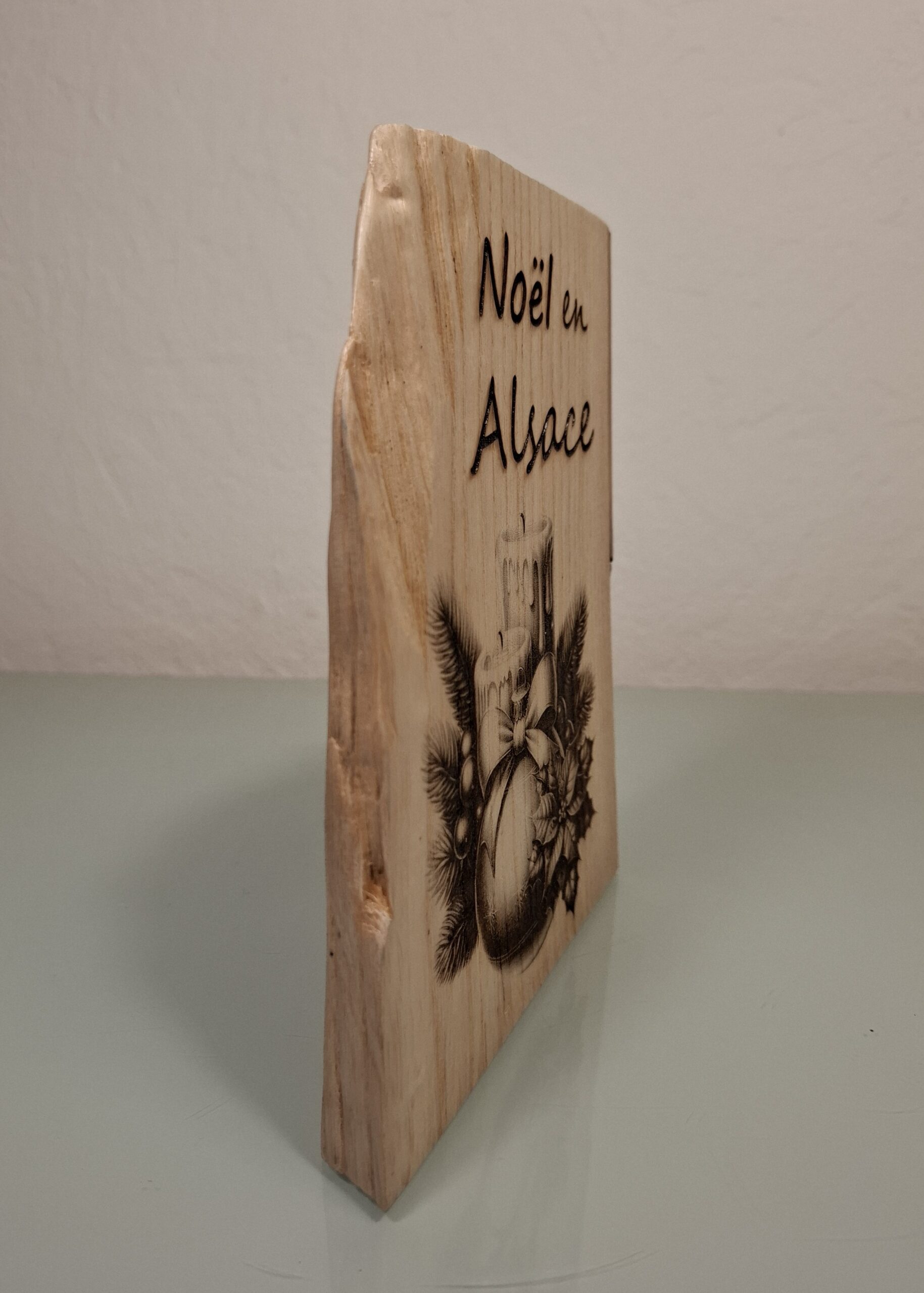 Décoration de Noël en Frêne massif : gravure laser thème Noël Alsace