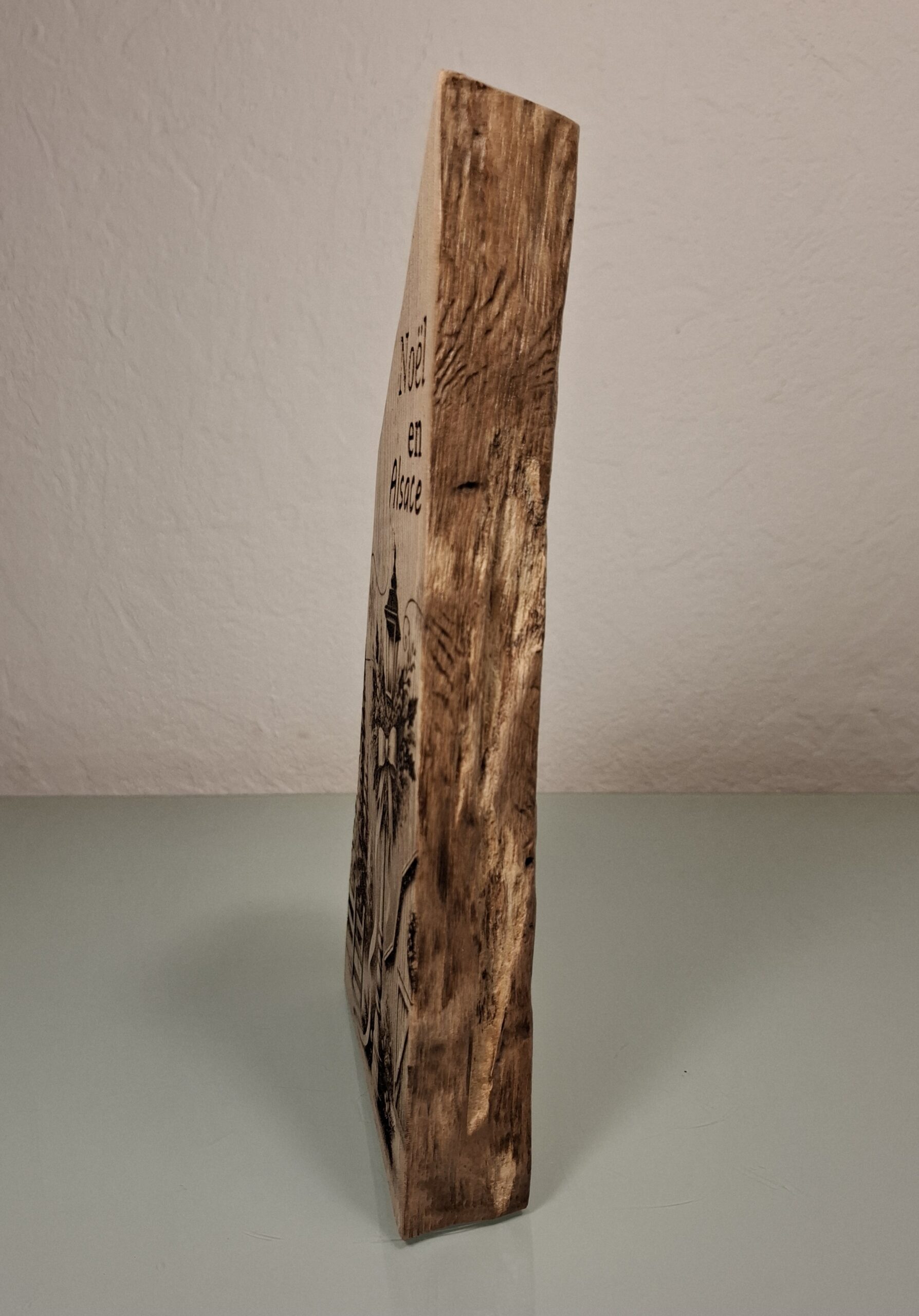 Découvrez notre décoration de Noël unique, idéale pour embellir votre intérieur durant la saison hivernale. Cette gravure laser sur bois représente une magnifique scène hivernale, capturant l’essence magique de Noël.