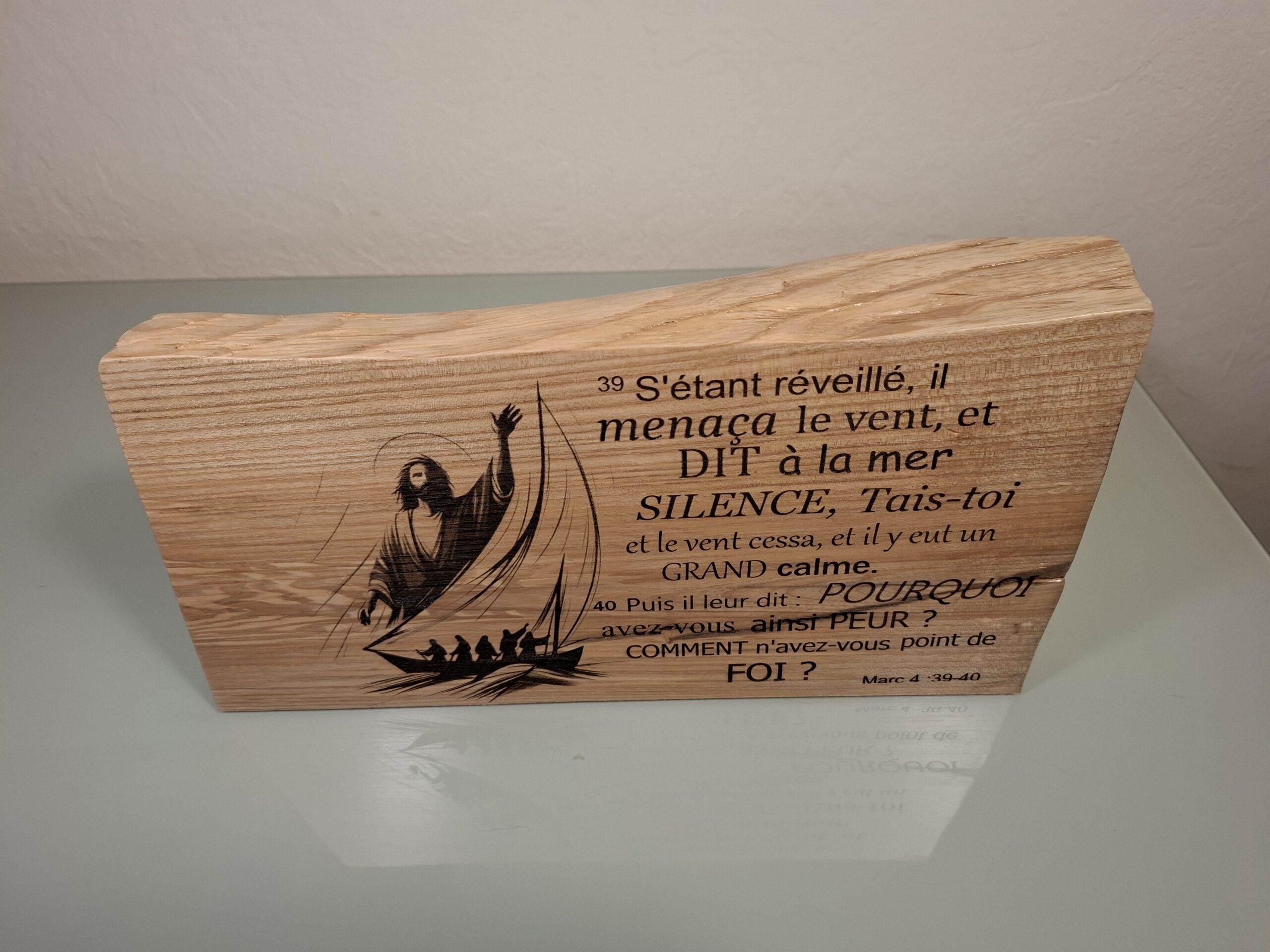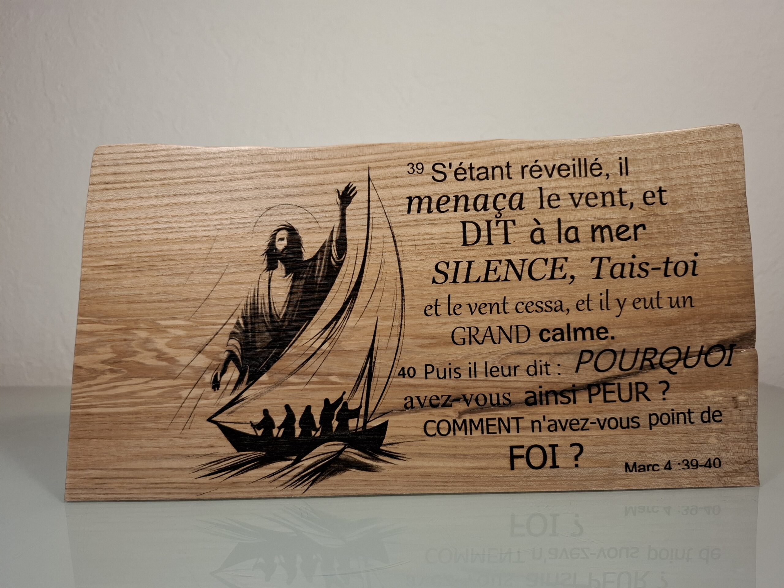 Gravure au Laser d’un Verset Biblique Marc 4: 39-40