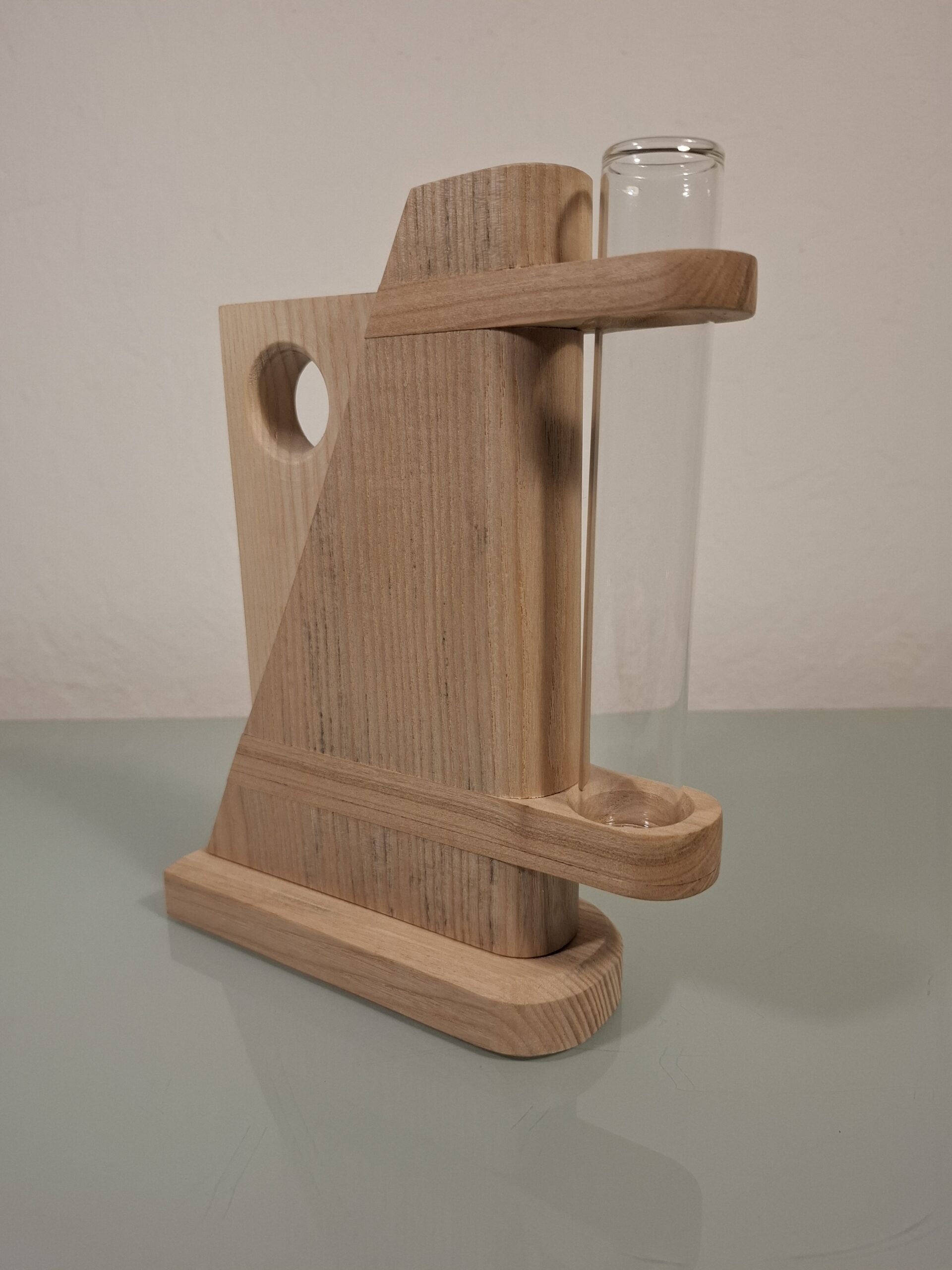 Ce soliflore en bois forme géométrique est une pièce unique qui allie modernité et artisanat traditionnel. Ce soliflore, réalisé en frêne et merisier massif, offre une allure contemporaine grâce à son design géométrique. Il complète parfaitement tout intérieur moderne tout en apportant une touche naturelle et chaleureuse.