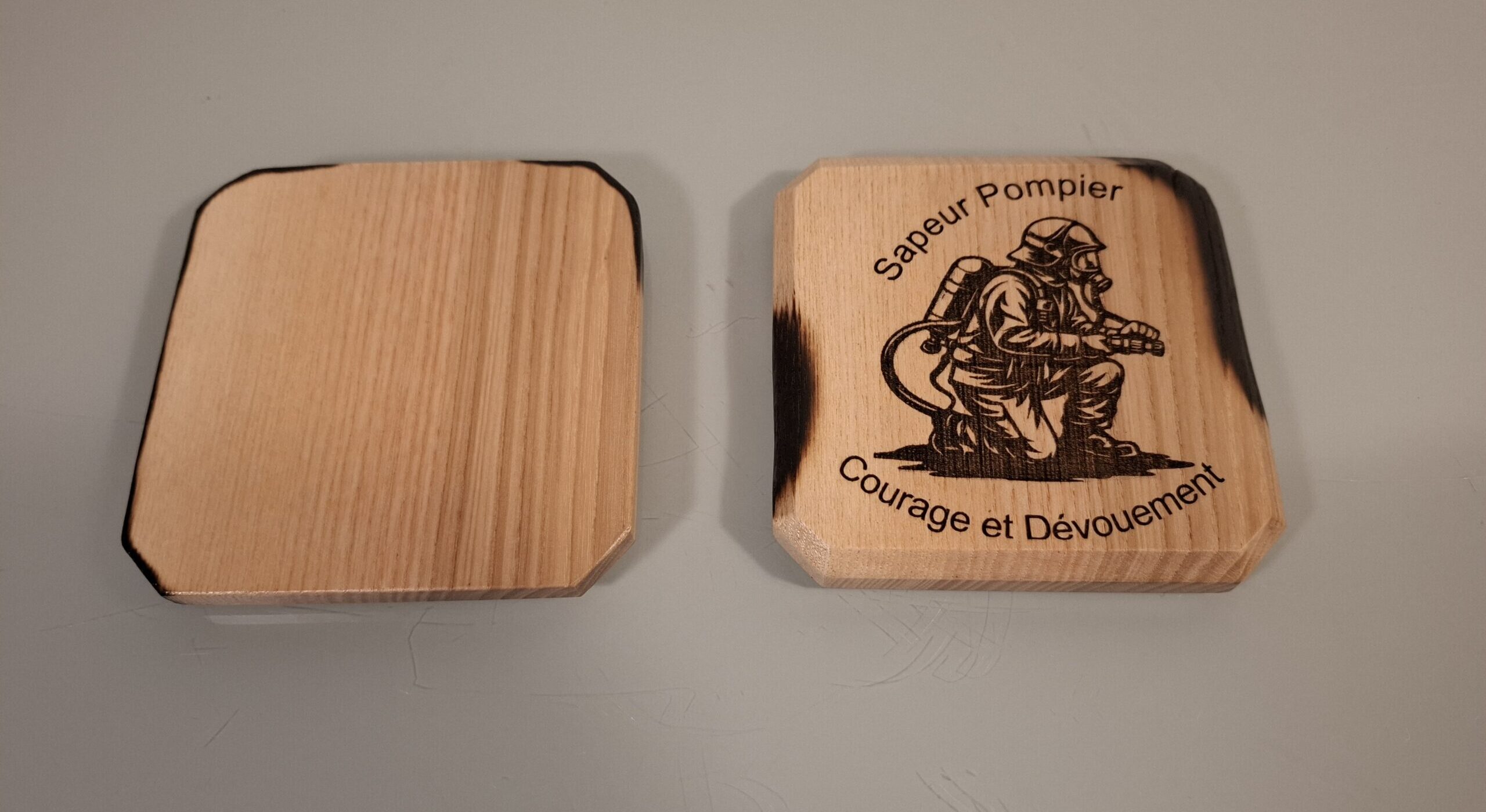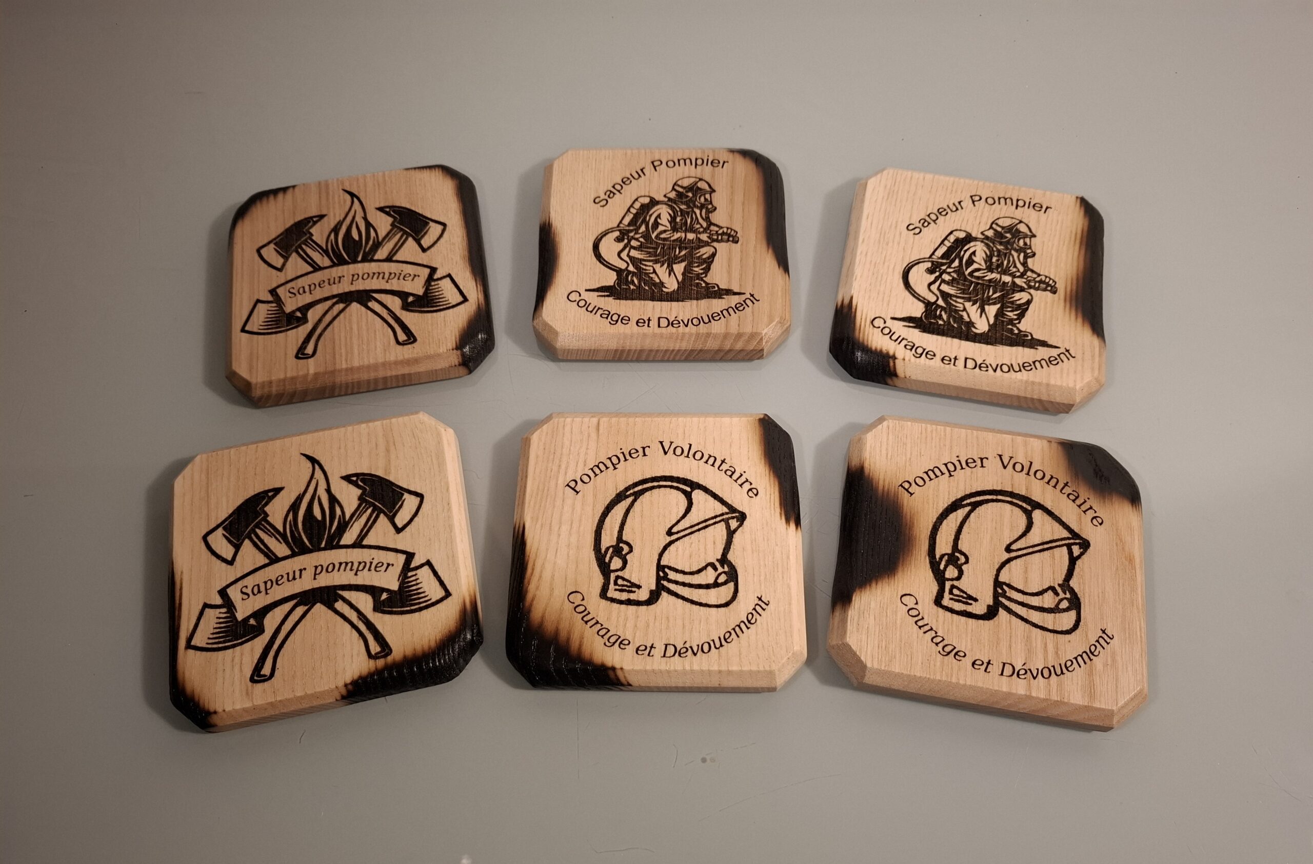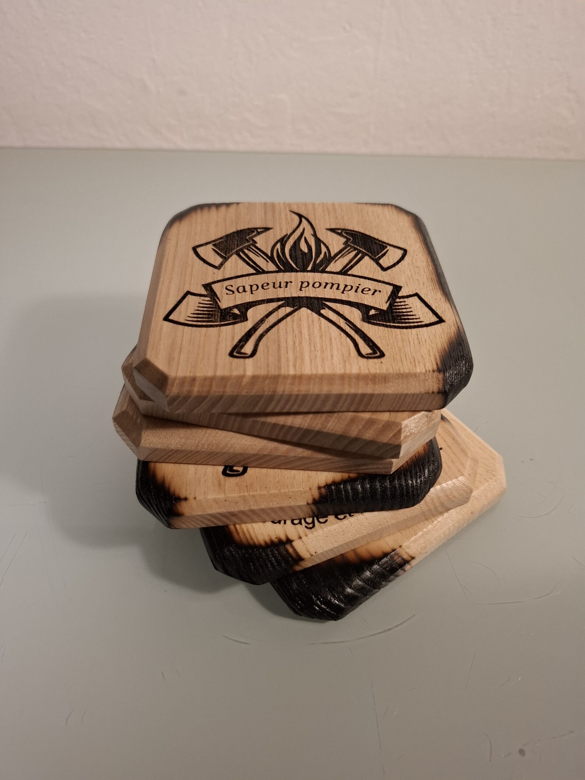 Découvrez nos sous-verres en bois sur le thème des pompiers. Ces accessoires uniques apportent une touche originale à votre décoration. Fabriqués artisanalement, ces sous-verres mesurent 100 x 100 mm avec une épaisseur de 12mm.