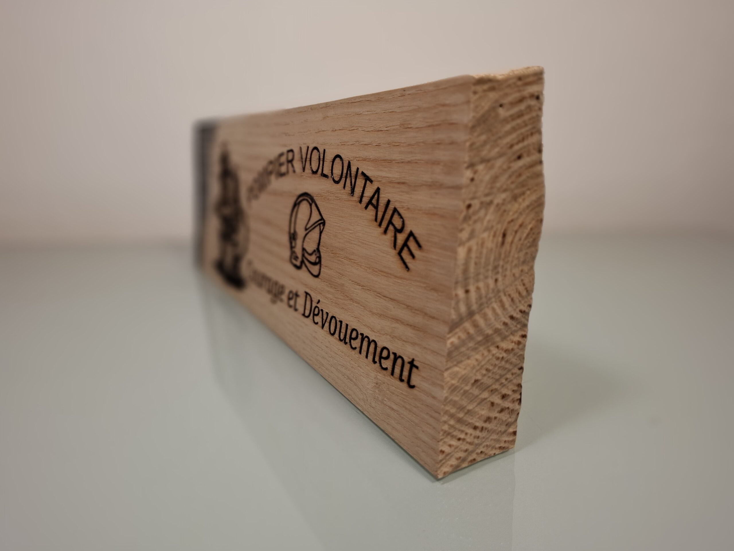 Le choix du frêne massif n’est pas anodin. Ce bois symbolise la résilience et la force, des qualités essentielles pour un pompier. Sa robustesse et son élégance naturelle font de ce trophée un objet de valeur, conçu pour durer.